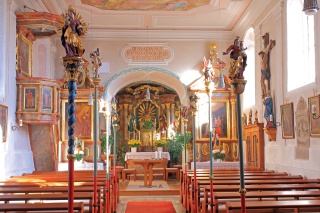 Die Kanzel und die Seitenaltäre entstanden Mitte des 17. Jahrhunderts. Der linke Altar ist dem hl. Antonius von Padua und der Rechte der Heiligen Familie gewidmet.