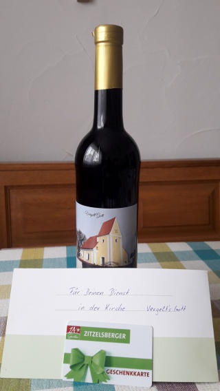 Die Mühlhauser Pfarrgemeinde bedankte sich bei Barbara Liebold und Siglinde Schneider für mehr als 25 Jahre Kirchenreinigung. Im kleinen privaten Rahmen fand die Verabschiedung statt. Dabei wurde ihnen als Zeichen der Wertschätzung ihrer geleisteten Arbeit gedankt und kleine Geschenke (Wein mit Gutschein) überreicht.