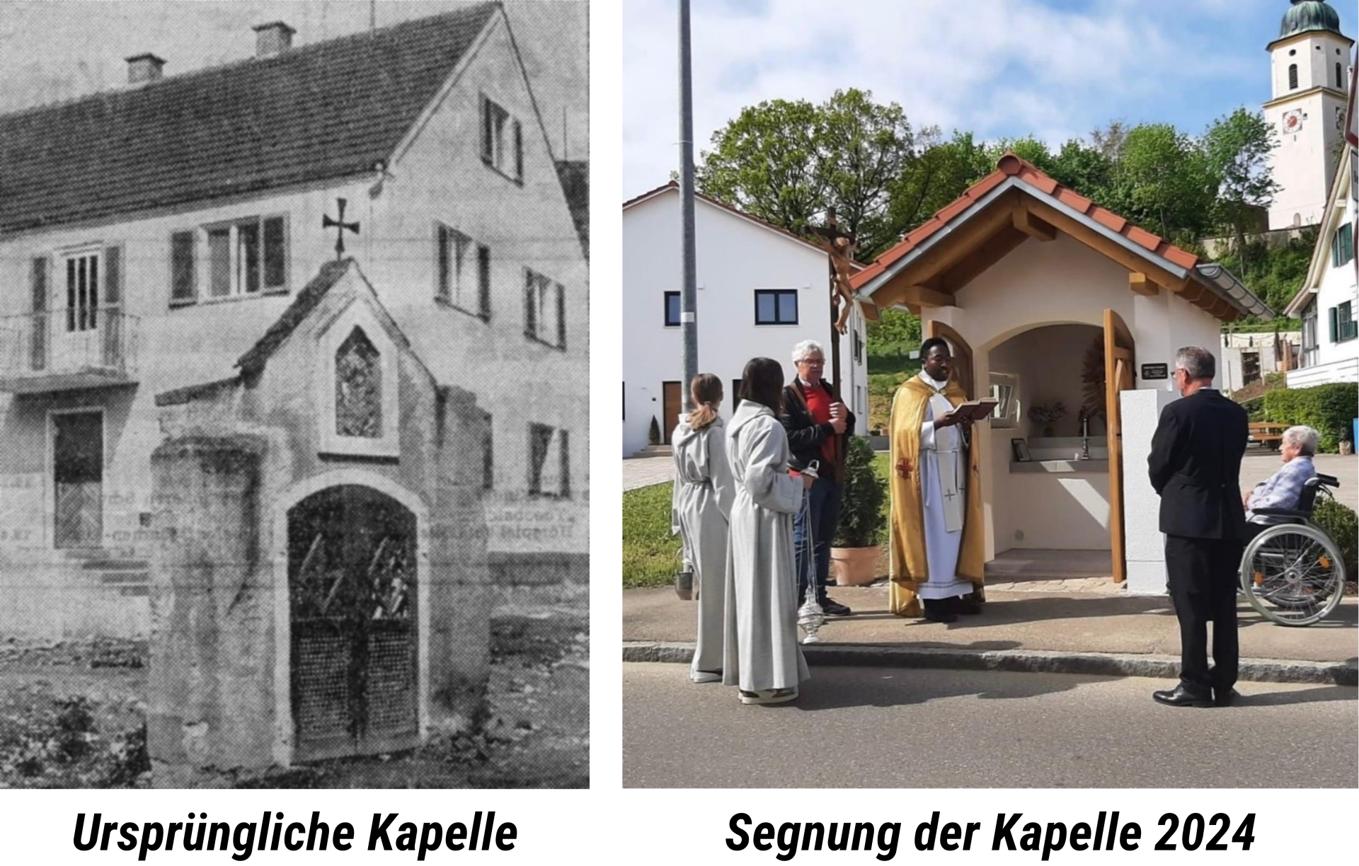 Neu aufgebaute Gosserbauern Kapelle, die dem heiligsten Herz Jesu gewidmet ist, in Pettenhofen durch Kaplan Emmanuel Onah gesegnet.