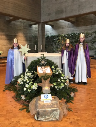 Stellvertretend für die vielen Kinder und Jugendlichen, die jedes Jahr als Sternsinger von Tür zu Tür ziehen, überbrachten im Gottesdienst zum Dreikönigstag die Ministrantinnen als Sternsinger den Segen Gottes.
