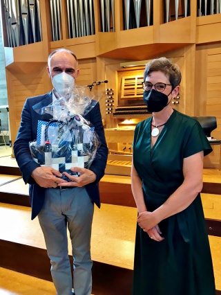Er sagte ihm ein herzliches "Vergelte es Ihnen Gott" für die Ausbildung von Orgelschülern und Kantoren und die zahlreichen Konzerte und Dienste in all den Jahren.