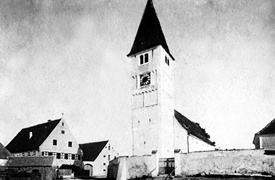 1546 brannte die Kirche im Schmalkaldischen Krieg ab. Nur der Turm blieb erhalten. Das Kirchenschiff wurde in den folgenden Jahren neu erbaut, aber erst 1564 geweiht.