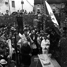 Am hochheiligen Fronleichnamsfest im Jahre des Heils 1938, den 16. Juni, wurde ich in feierlicher, kirchlicher Weihe den Grundmauern der Kirche einverleibt."