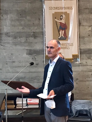 Pfarrer Brenner würdigte ihn in seiner Ansprache als den Mann, der "zuverlässig und vor allem mit großem Können die Kirchenmusik in unserer Pfarrei zum Blühen gebracht" hat, der "einen großartigen Chor geformt, der die Pfarrei St. Christoph 36 Jahre" und ihn selbst "immerhin 11 Jahre lang mit herzerhebenden Gottesdiensten beglückt hat," Er habe den Kindern und Jugendlichen "im Kinder- und Jugendchor einen unschätzbaren Dienst geleistet und ihre Stimmen geformt" und natürlich auch die Kindergartenkinder "zur Musik und zum Gesang hingeführt."