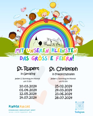 Jeden zweiten und vierten Sonntag im Monat laden Sie hierzu die Kinderkirchen-Teams von Gerolfing und Friedrichshofen ein, mitzufeiern und mitzuerleben.