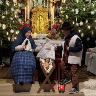 Unterstützung bekamen sie auch von den Krippenspieler-Eltern (blökende Schafe, bellende Hunde), Franz Bier und Markus Ledl (Ton und Licht), Mesnerin Angelika Dollinger (Kostüme), den Ministranten Simon Götzenberger, Matthias Schillinger und Sebastian Fuchs.