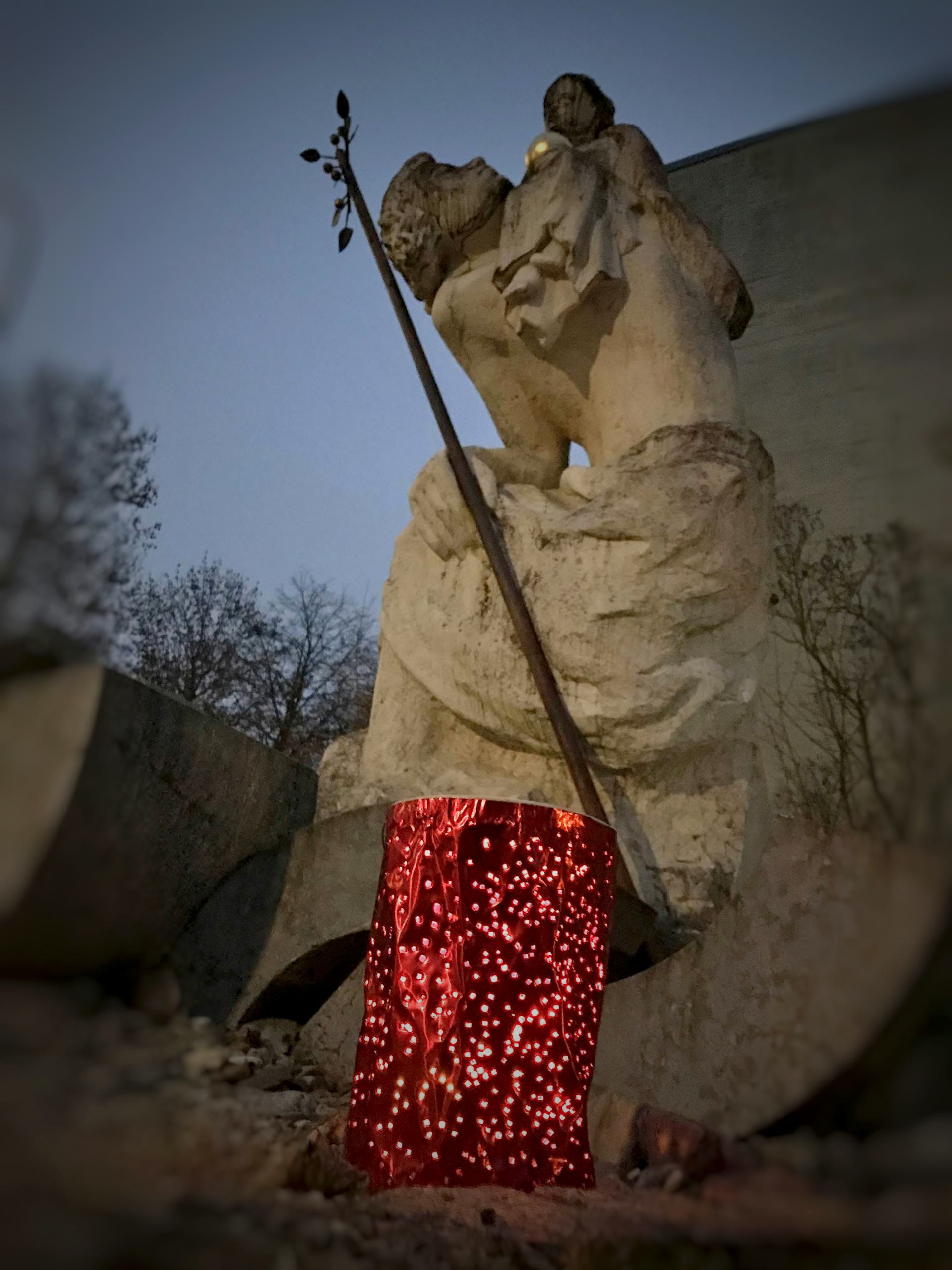 Beendet wurde das Lichterfest so wie letztes Mal an der Christophorusstatue, wo dieses Mal die Kinder tatsächlich auf den Nikolaus trafen, der ihnen - von einem Engel begleitet - eine kleine Überraschung schenkte.