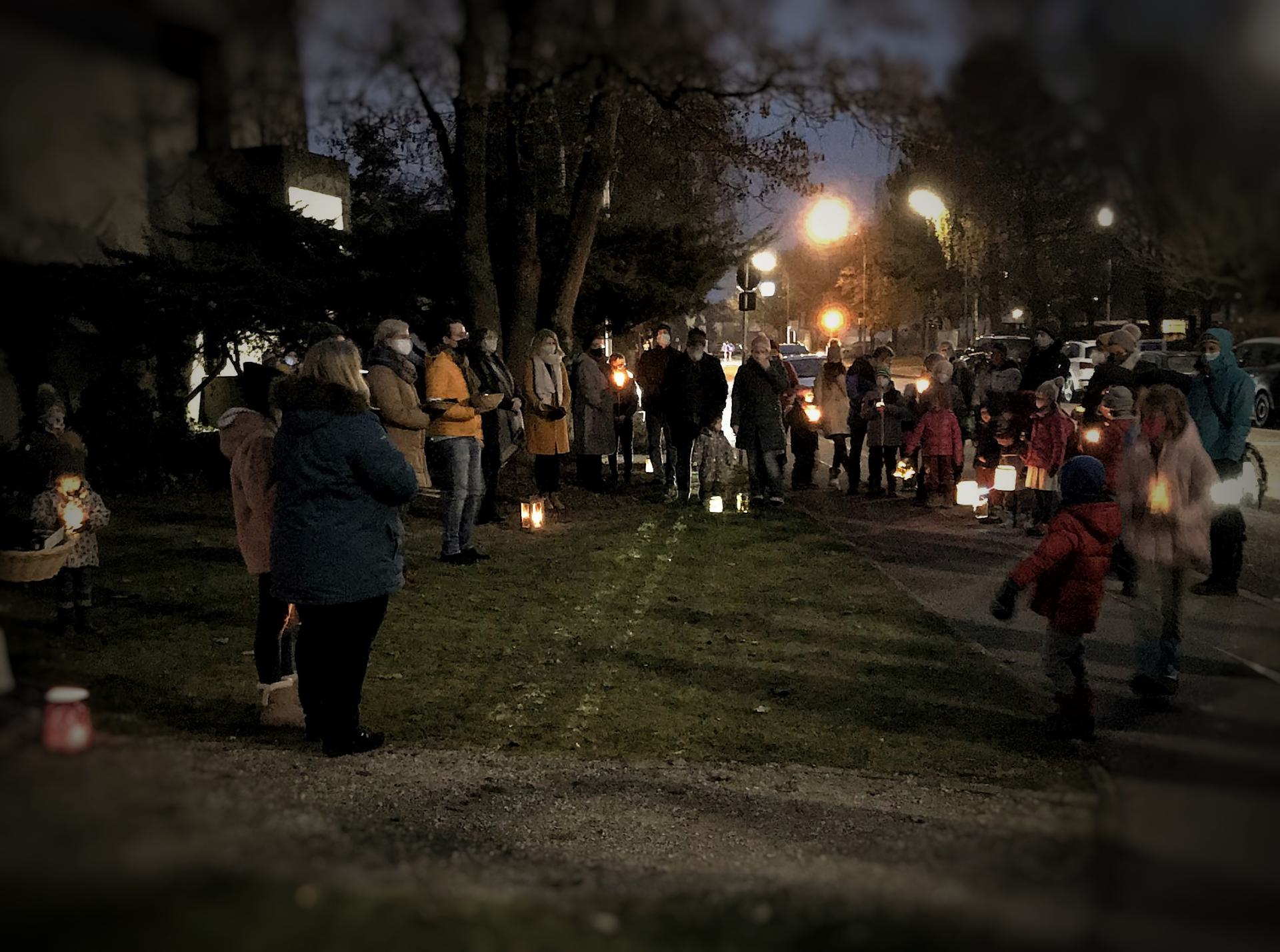 Da im Advent 2020 die bisher gewohnten wöchentlichen Kinderkirchenfeiern im Pfarrheim zeitgleich zur Sonntagsgottesdienst nicht stattfinden konnten, wurde die Idee von nachmittäglichen Lichterfesten als Angebot für Familien mit Kindern geboren, die in und um die Pfarrkirche St. Christoph stattfanden.