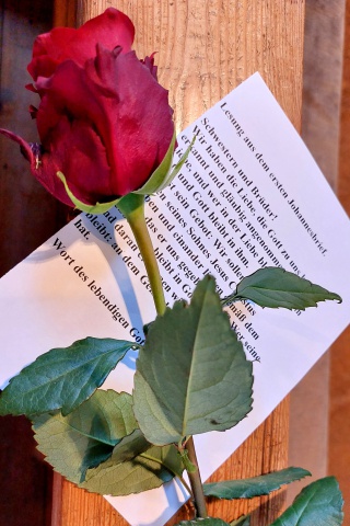 Der festliche Abend begann mit einem Gottesdienst, dem Pfarrer Georg Brenner vorstand. Musikalisch wurde dieser mit bewegenden Liedern von den "Comingwest-Singers" umrahmt. Am Ende des Gottesdienstes erhielt jedes Paar eine rote Rose als Zeichen der Wertschätzung.